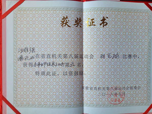 日前,由省直机关工委、省体育局共同主办的省直机关第八届职工运动会胜利落下帷幕。本届运动会,比赛项目共包括23个大项192个小项,有168个省直厅局单位、13000多名运动员报名参赛。我校宋立姝、龙爱武、汪维强三位老师代表安徽省教育厅参加了桥牌、跳绳、羽毛球等项目的比赛,取得了喜人成绩。